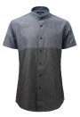 เสื้อเช้ิตสไตล์ยีนส์ปกเล็กพิเศษทันสมัย เสื้อเชิ้ตแขนสั้น ตัดต่อผ้าสลับสีน้ำเงินและสีเทา เนื้อผ้าสไตล์สตรีทแฟชั่น งานตัดเย็บคุณภาพทั้งด้านนอกและด้านใน ฝีเข็มละเอียด กระดุมเล่นสีตามสีผ้า ช่วงผ้าเทากระดุมเทา ผ้าน้ำเงินกระดุมออกสีน้ำเงิน ปลายปกเสื้อเชิ้ตผู้ชายติดกระดุม เท่ห์สุดๆ