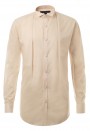 เสื้อเชิ้ตสีเบจ ปกทักซิโด้ จับเกล็กหน้าสองกล็ด เนื้อผ้าคอตตอนสวมใส่สบาย