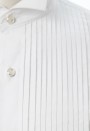 เสื้อเชิ้ตสีขาว ปก ทักซิโด้ จับเกล็ดด้านหน้า เนื้อผ้าคอตตอน สวมใส่สบาย งานตัดเย็บคุณภาพ สามารถสวมใส่ได้หลายโอกาส