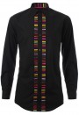 เสื้อเช้ิตสีดำตัดต่อผ้าลายสลับสี