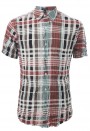 เสื้อเช้ิตแขนสั้นลายตารางสลับสีแดง-เขียวอ่อน