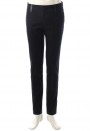 กางเกงสีดำ ทรงกระบอกเล็ก หูกางเกงหนังและ กระเป๋าหลังเจาะตัดต่อผ้าหนังที่ลิ้นกระเป๋า