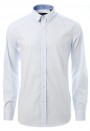 เสื้อเชิ้ตลายตารางสีฟ้าอ่อน เนื้อผ้าคอนตอนสวมใส่สบาย รูปแบบปกเล็กทันสมัย งานตัดเย็บคุณภาพ แพทเทิร์นได้มาตรฐาน