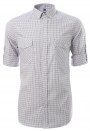 เสื้อเช้ิตลายตารางทอลายสลับสีน้ำเงิน-ม่วงมังคุด เนื้อผ้า คอตตอน สวมใส่สบายกระเป๋าหน้าสองใบสไตล์แคชชวล