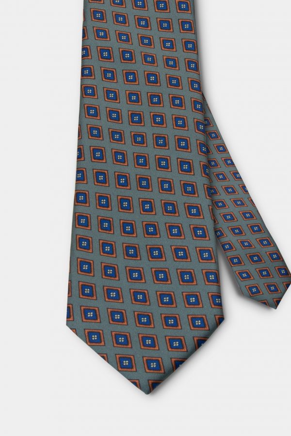 Green&Navy Three Tone Awmimh Stripe Necktie – เนคไทสีเขียวกรมเทาริ้ว