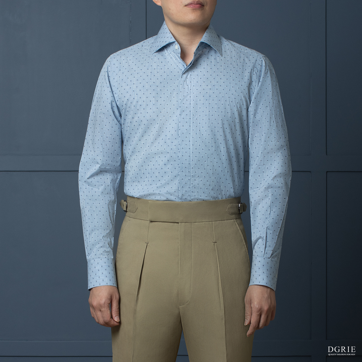 Cotton Plain Weave N/V X-Dot Spread Collar Blue Shirt – เชิ้ตสีฟ้าอ่อนลายจุดไขว้