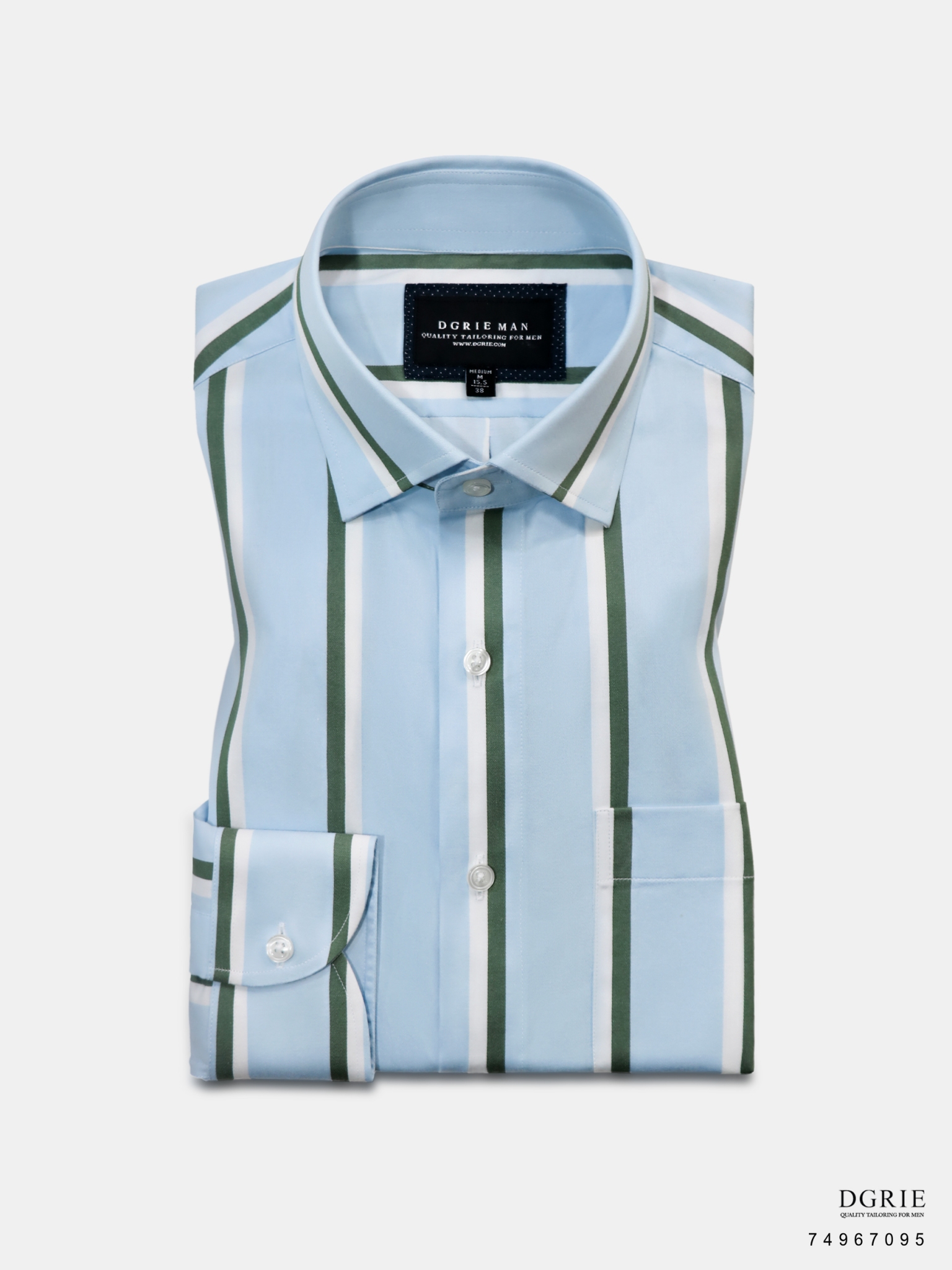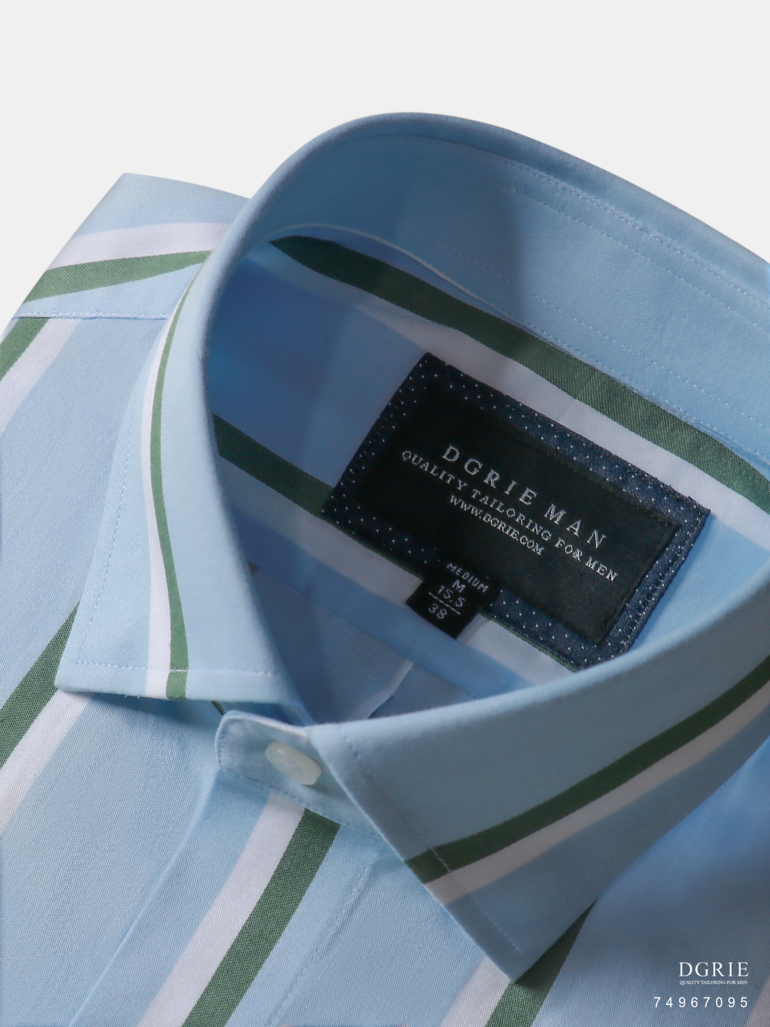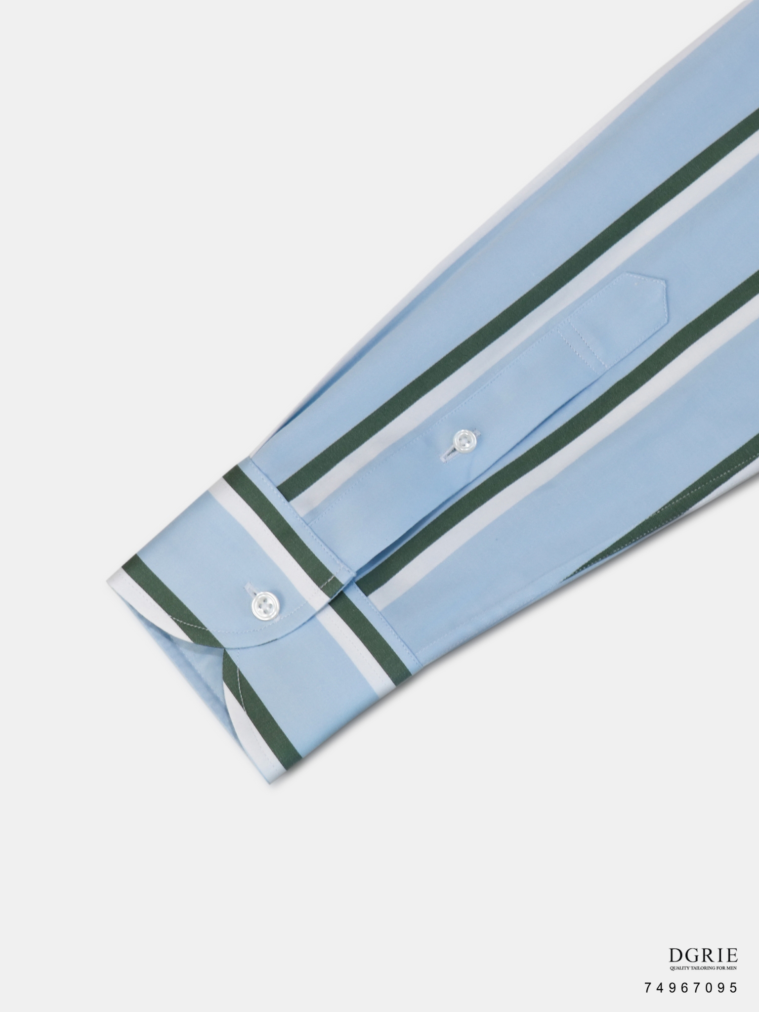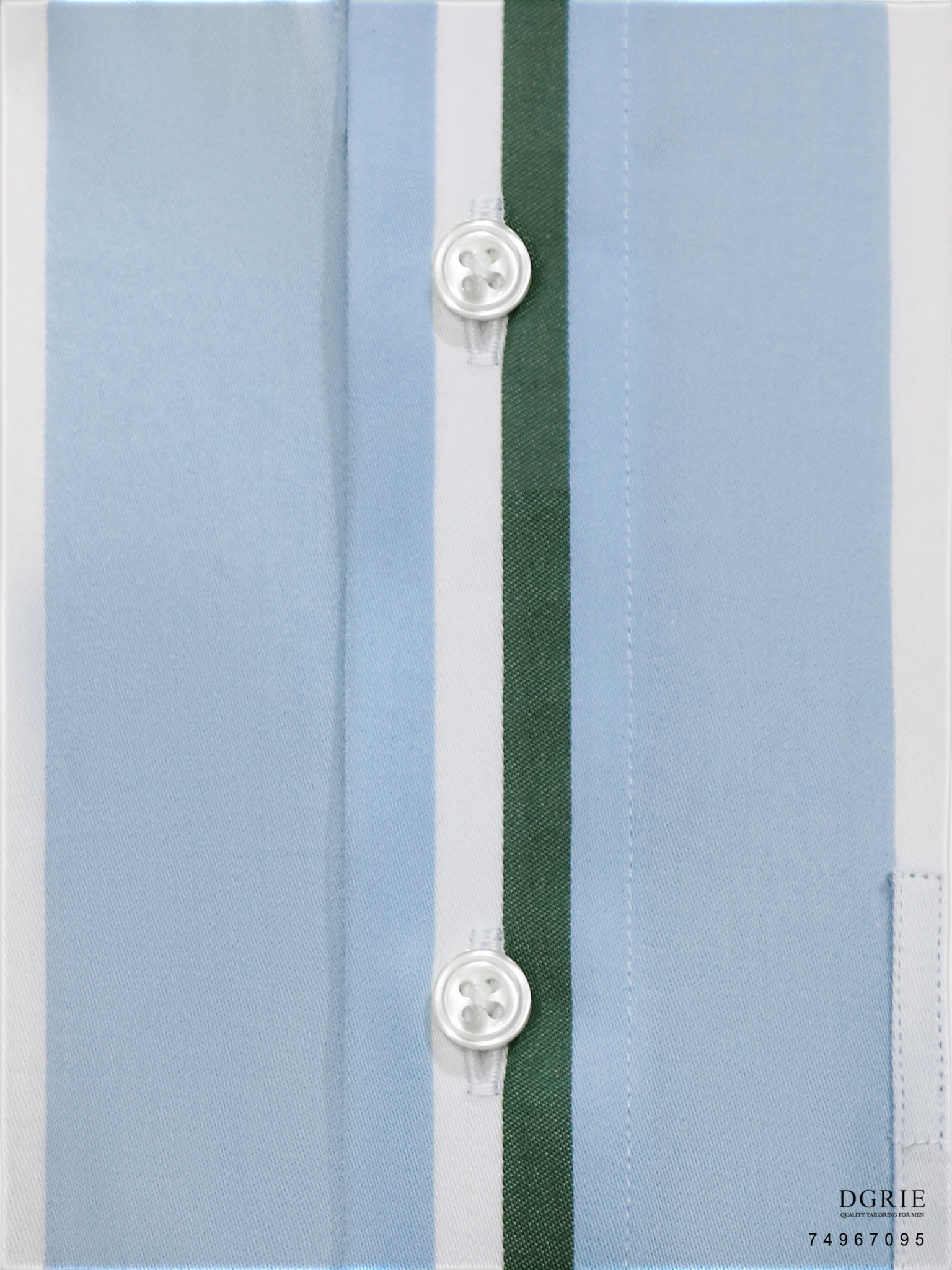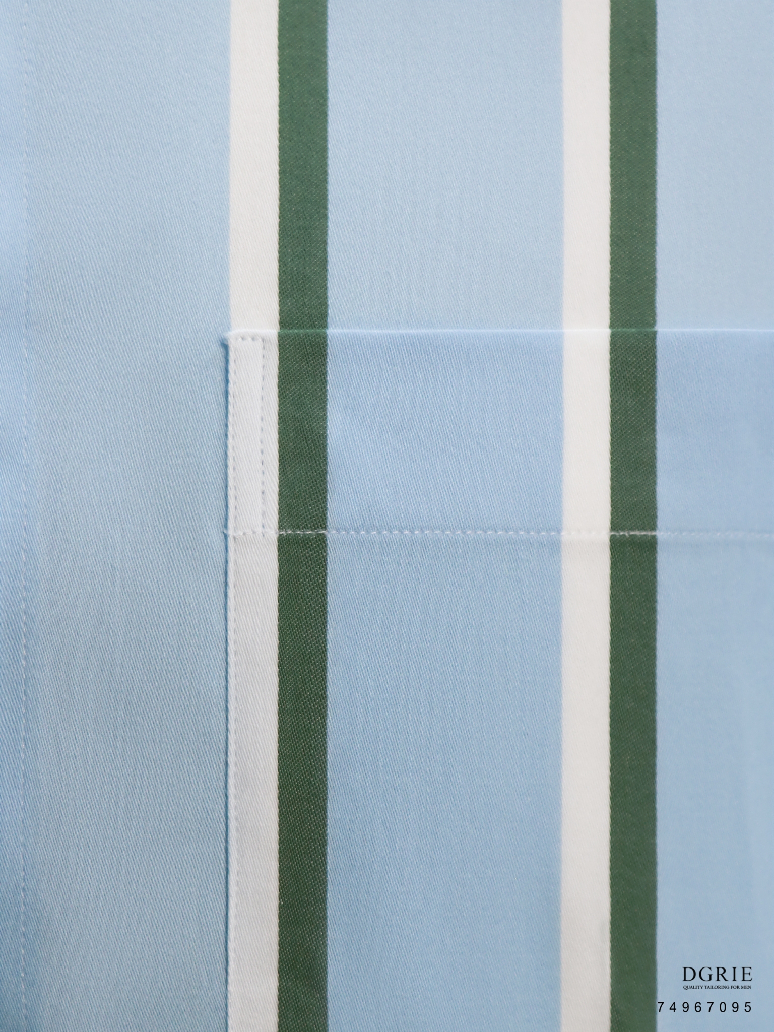 Cotton Satin Blue Button Down Collar Green&White Stipe 1.5cm Shirt – เชิ้ตสีฟ้าลายสีเขียวสลับขาว