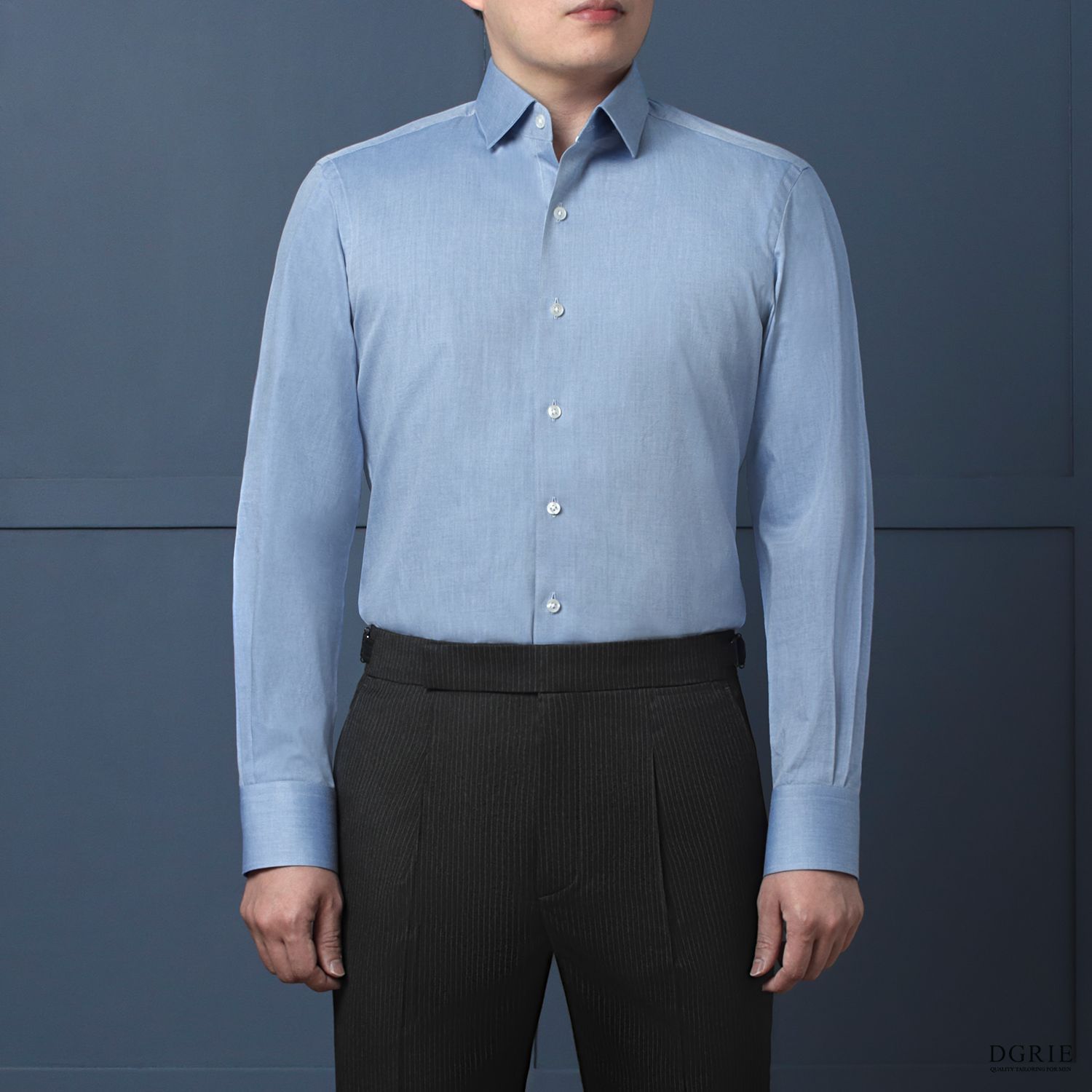 เสื้อเชิ้ตสีฟ้า Cotton Spread Collar 7cm Iridescent Blue Shirt – DGRIE