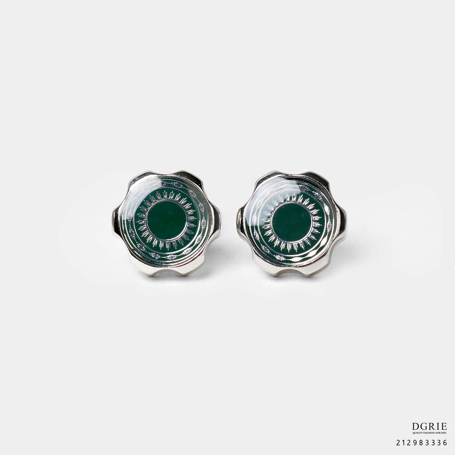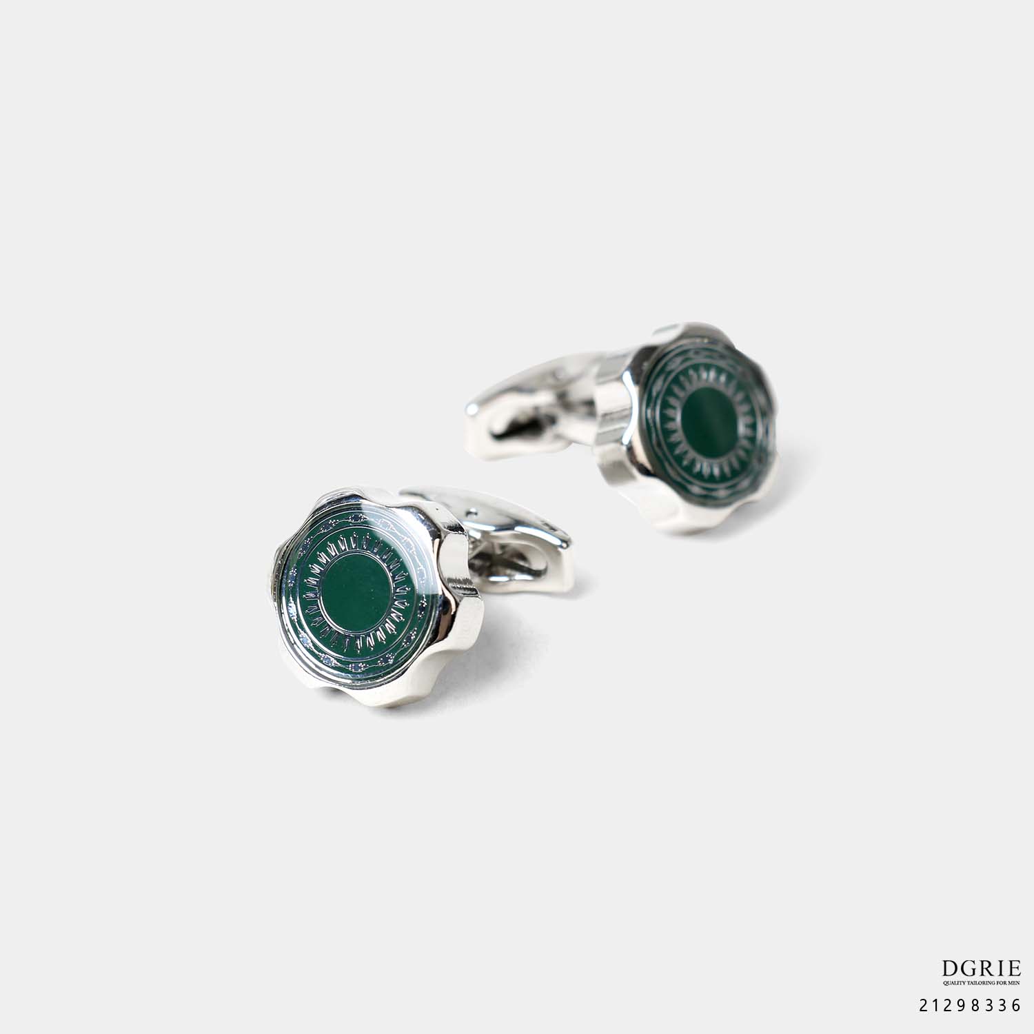 Dark Emerald Green/Silver Flower Cufflinks – กระดุมข้อมือลายดอกไม้สีเขียวเข้ม