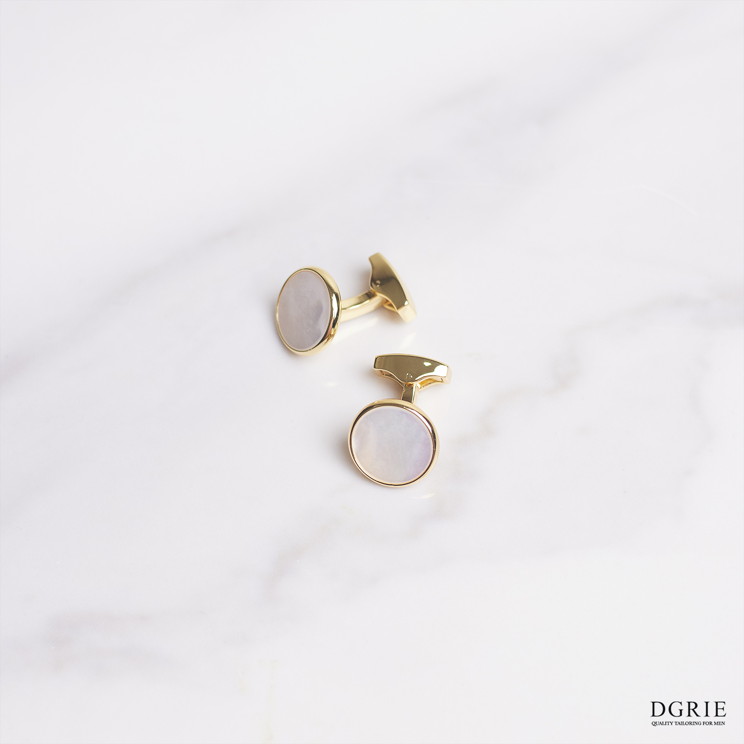 Mother of Pearl Gold Round Cufflinks – กระดุมข้อมือทรงกลมสีไข่มุกขอบทอง