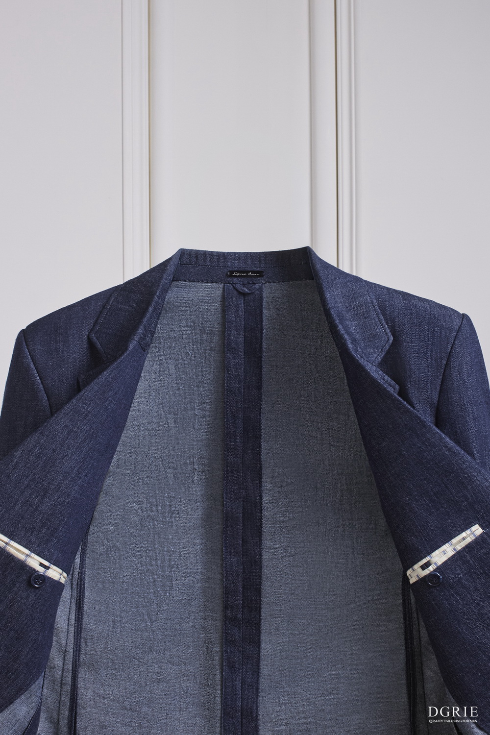 DGRIE – Navy Denim Notch Lapel Unlining Patch Pocket Sport Jacket