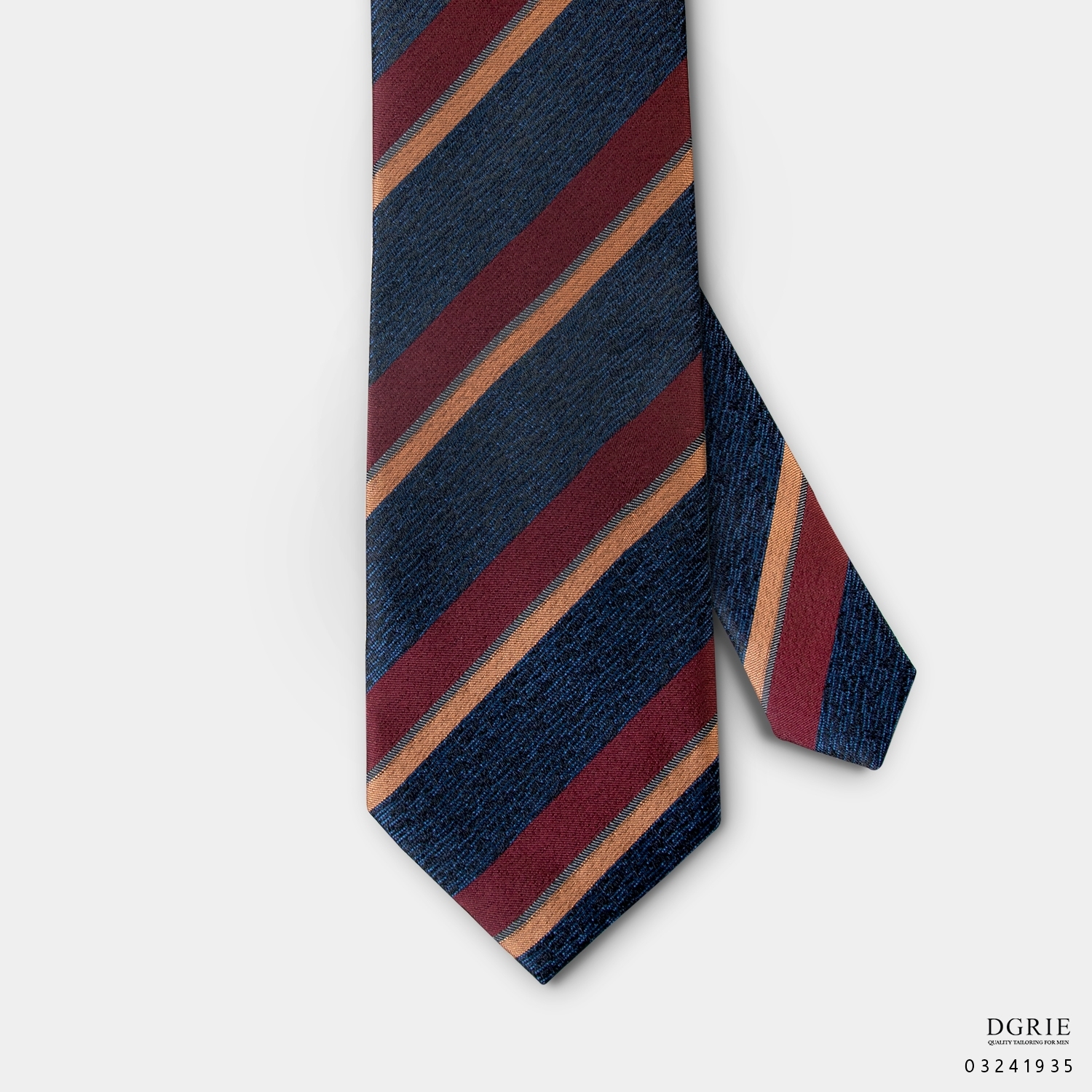Navy Melange pattern Stripe Red&Orange 3 Inch Necktie – เนคไทสีกรมลายทางสีแดง/ส้ม