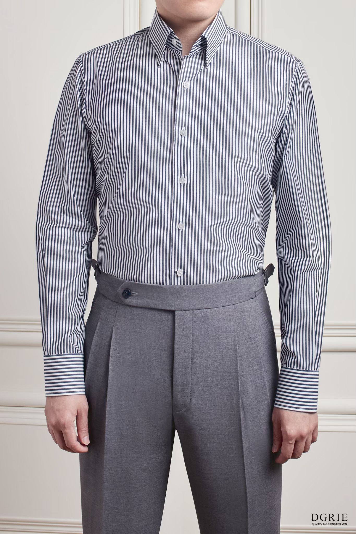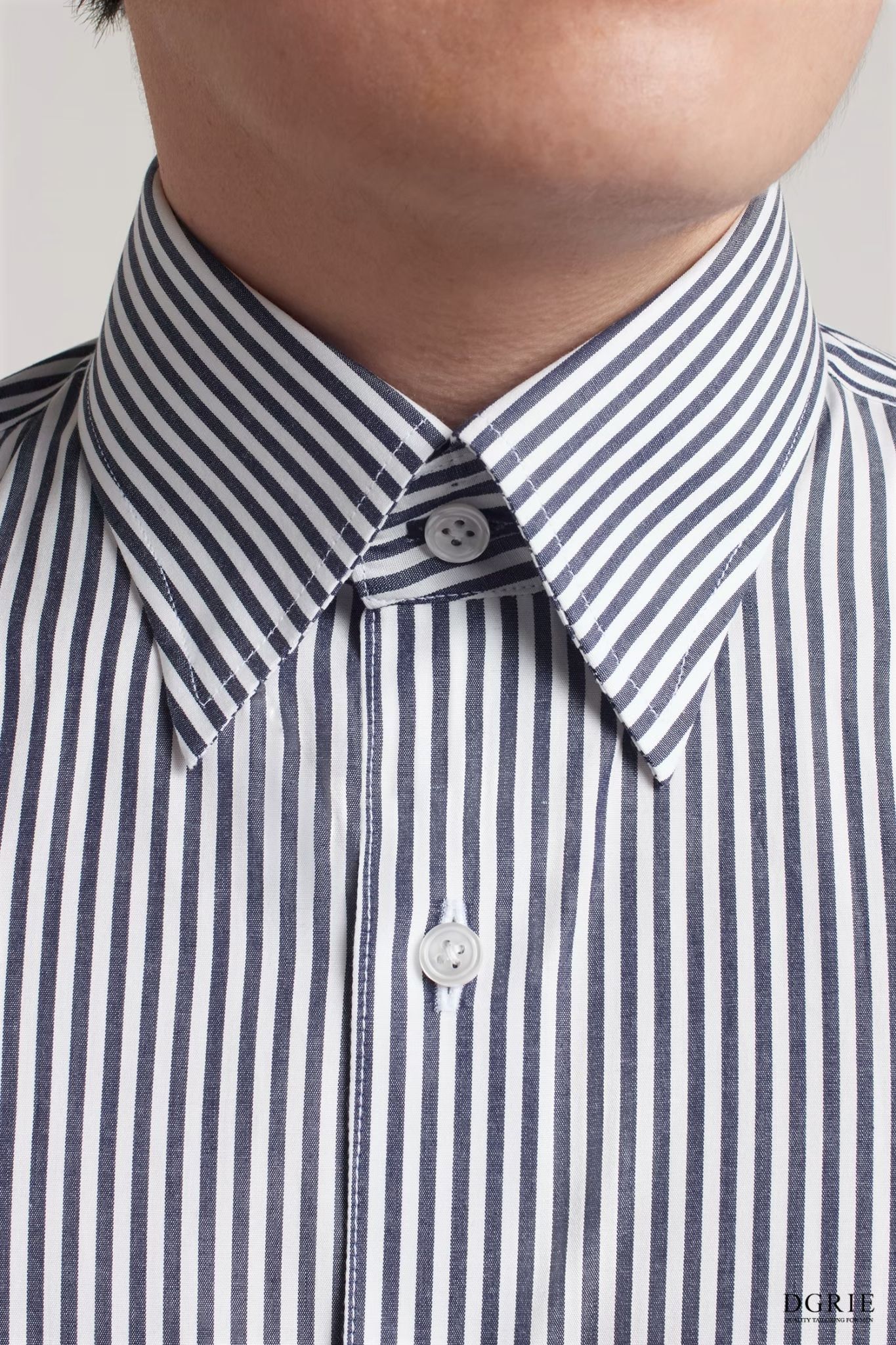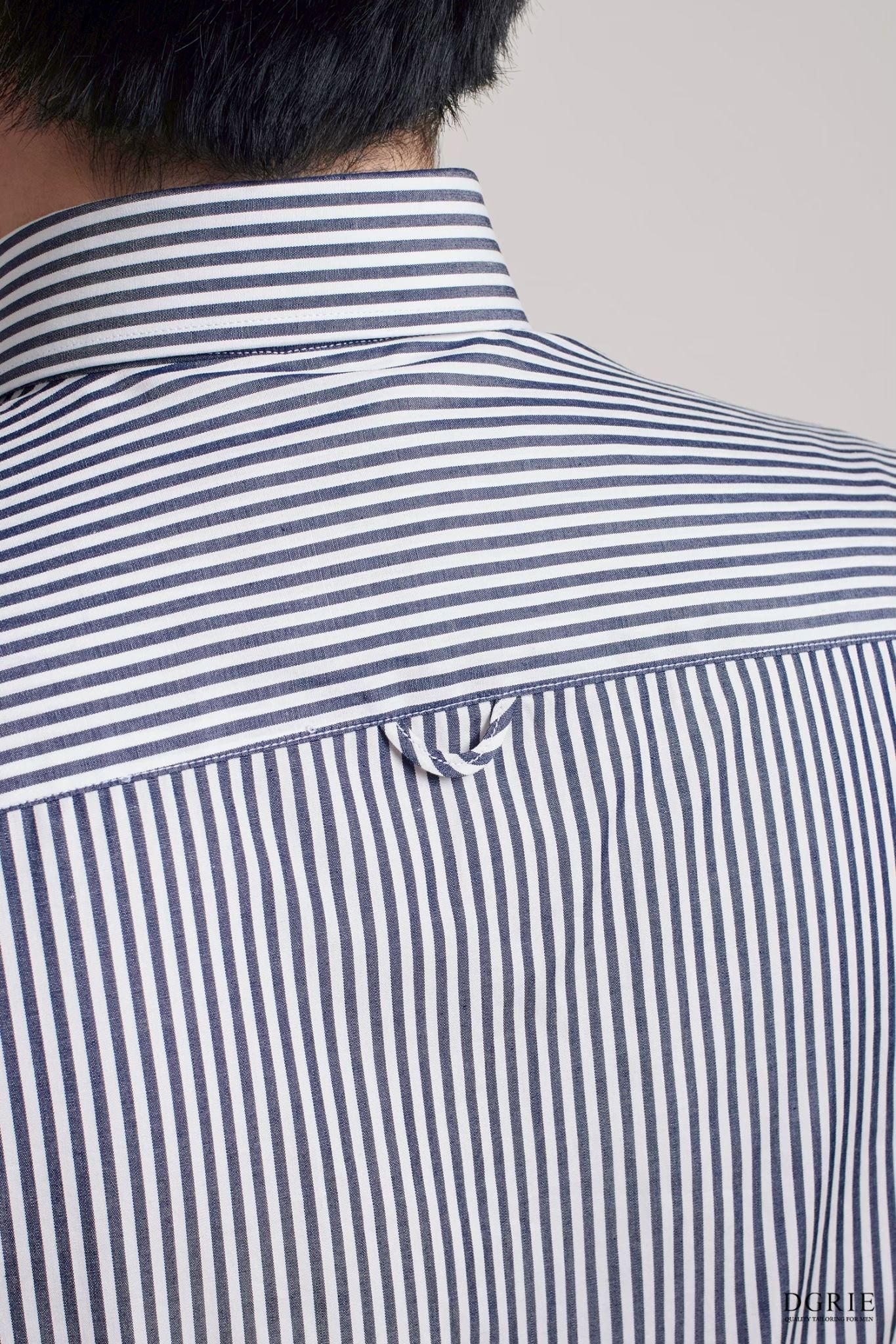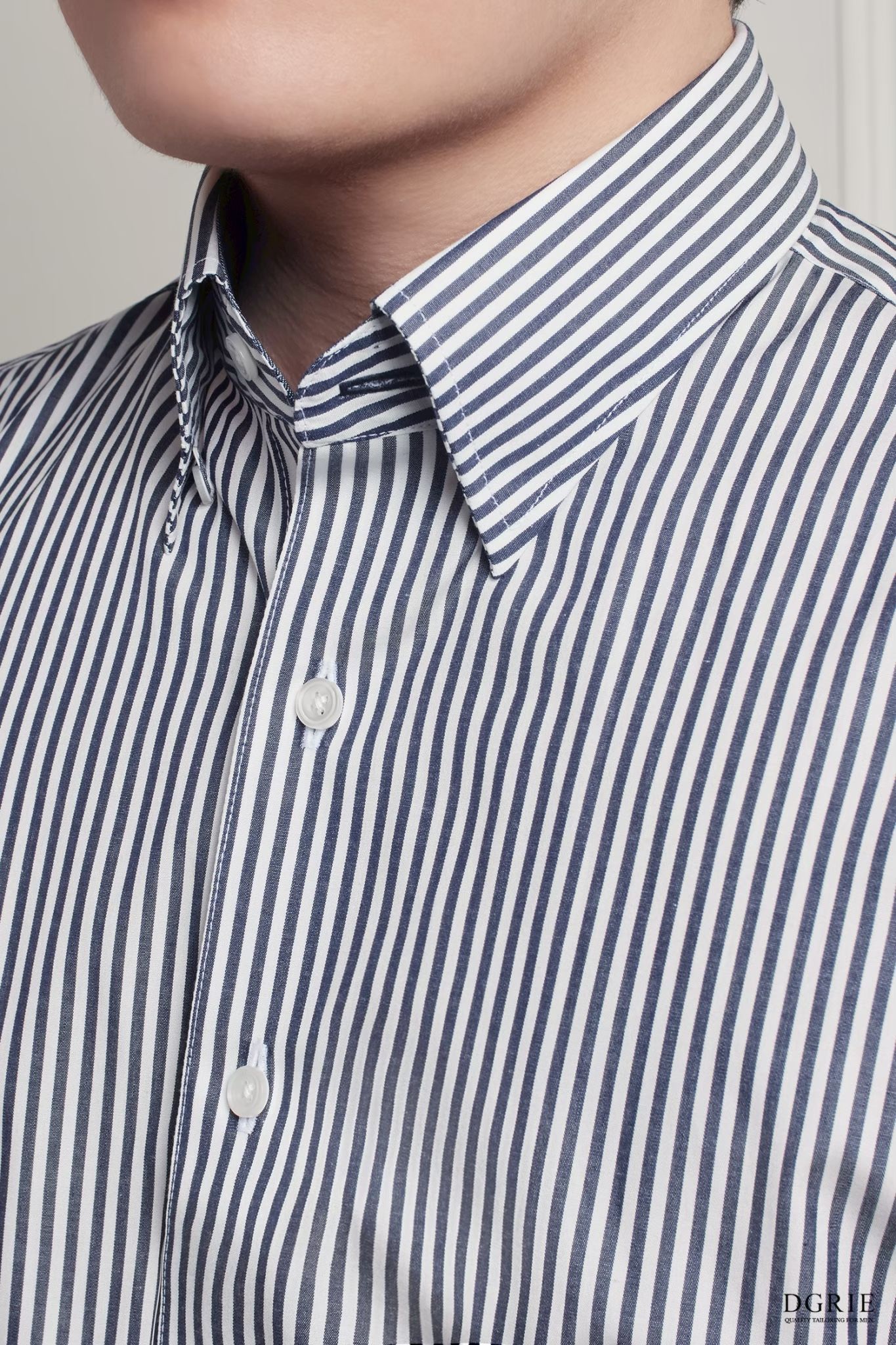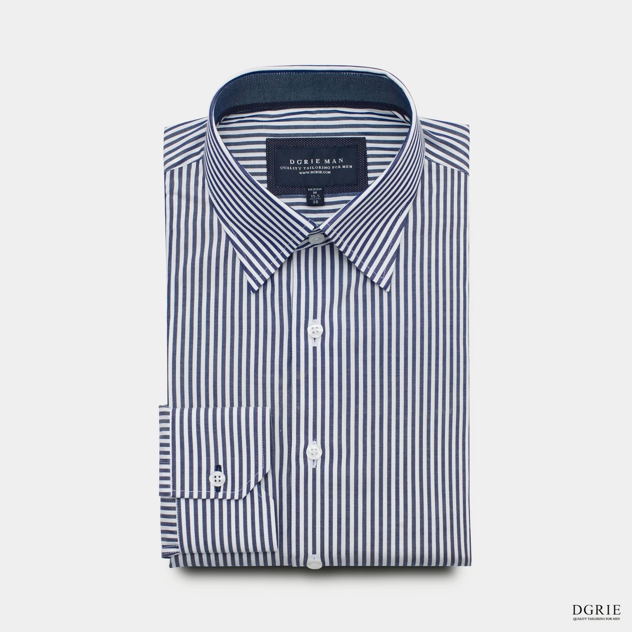 DGRIE – Navy & White 0.3cm Stripe Cotton Silk Hidden Button-Down Spread Collar Shirt