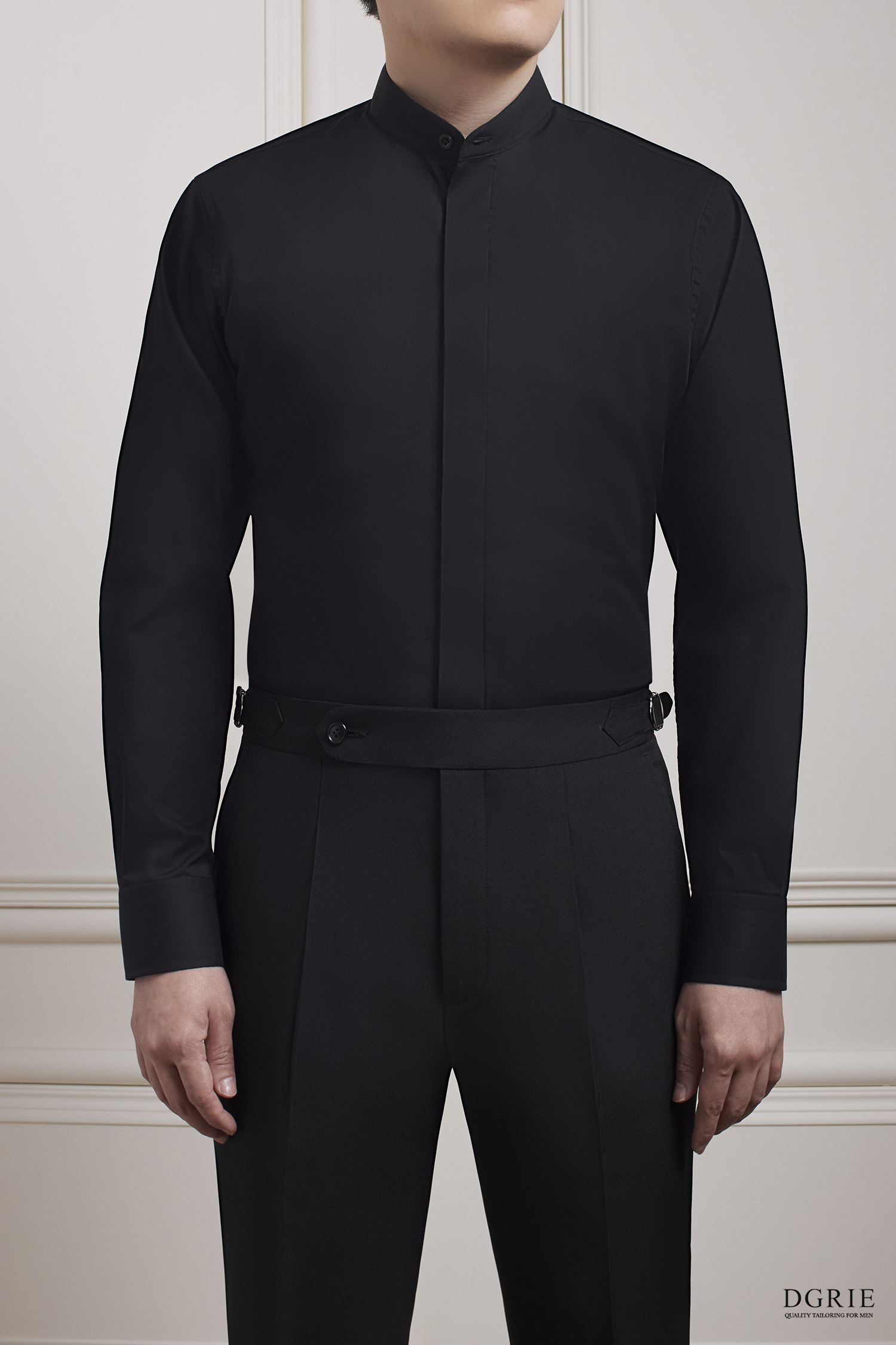 Noir Black B/N Mandarin Collar Cotton Shirt – เชิ้ตสีดำคอจีน