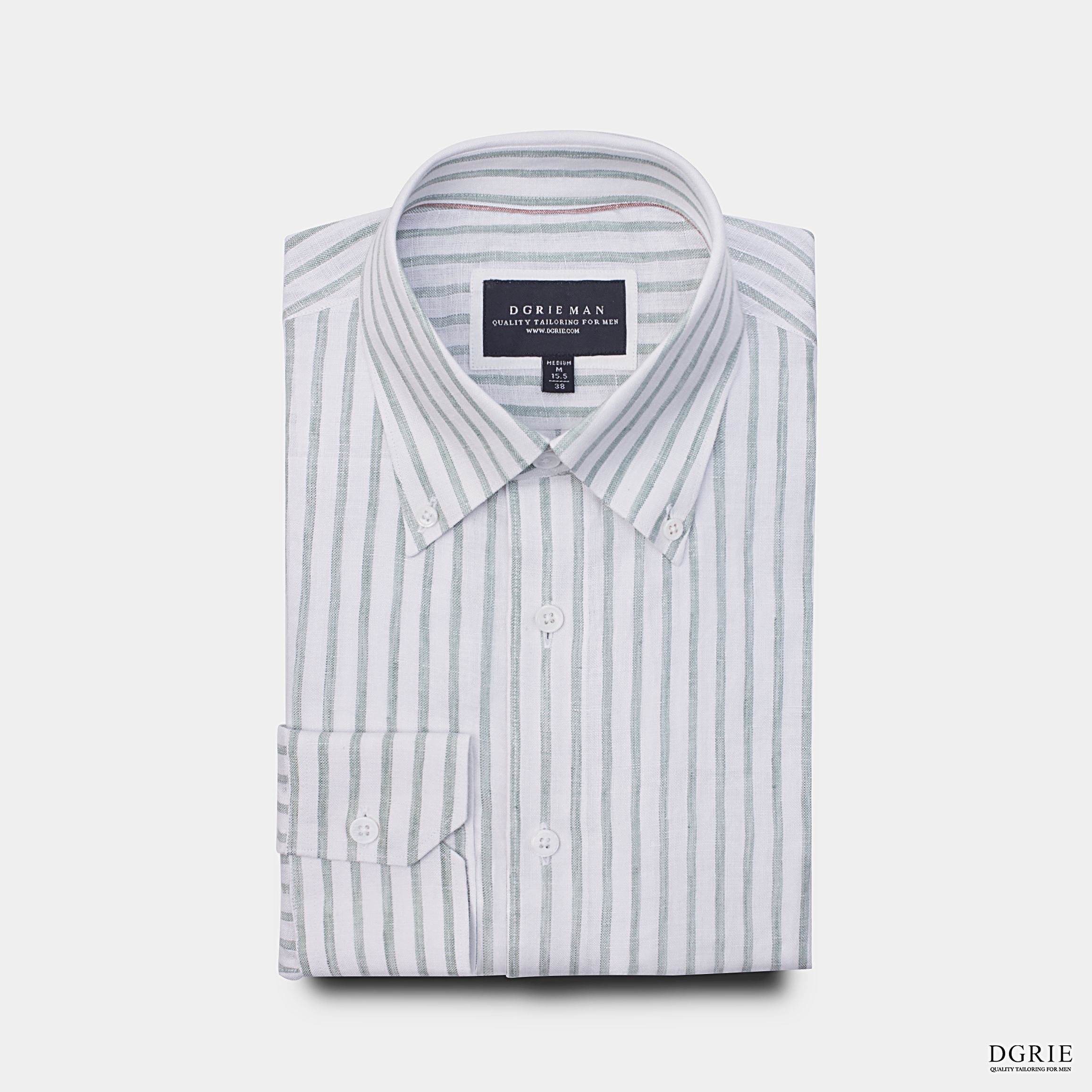 Olive Green Poland linen Stipe 1cm Button down Collar Shirt – เชิ้ตลายทางสีขาวสลับเขียว