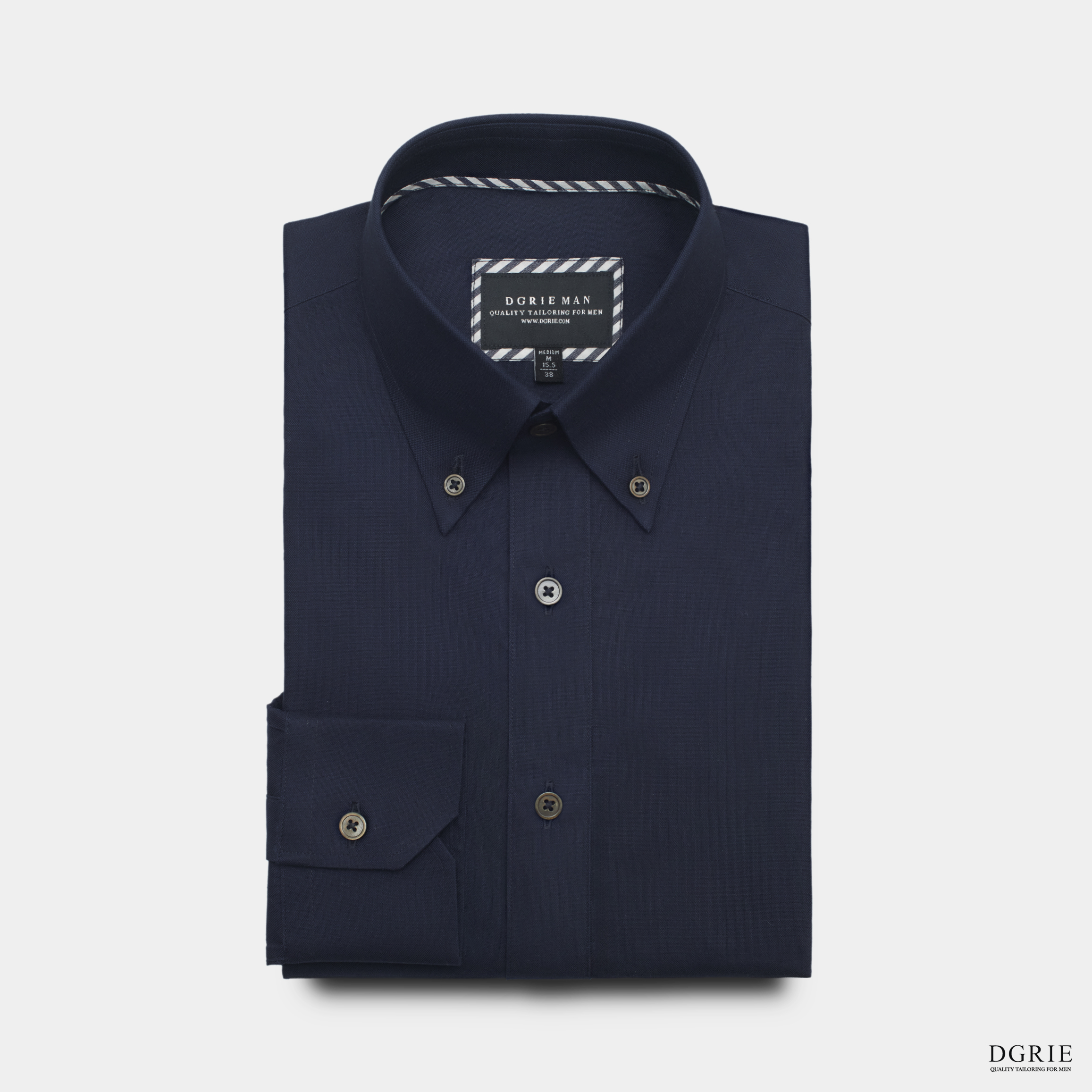 Oxford Cotton Button Down Navy Blue N/W stripe Details Shirt – เชิ้ตสีกรมปกติดกระดุม