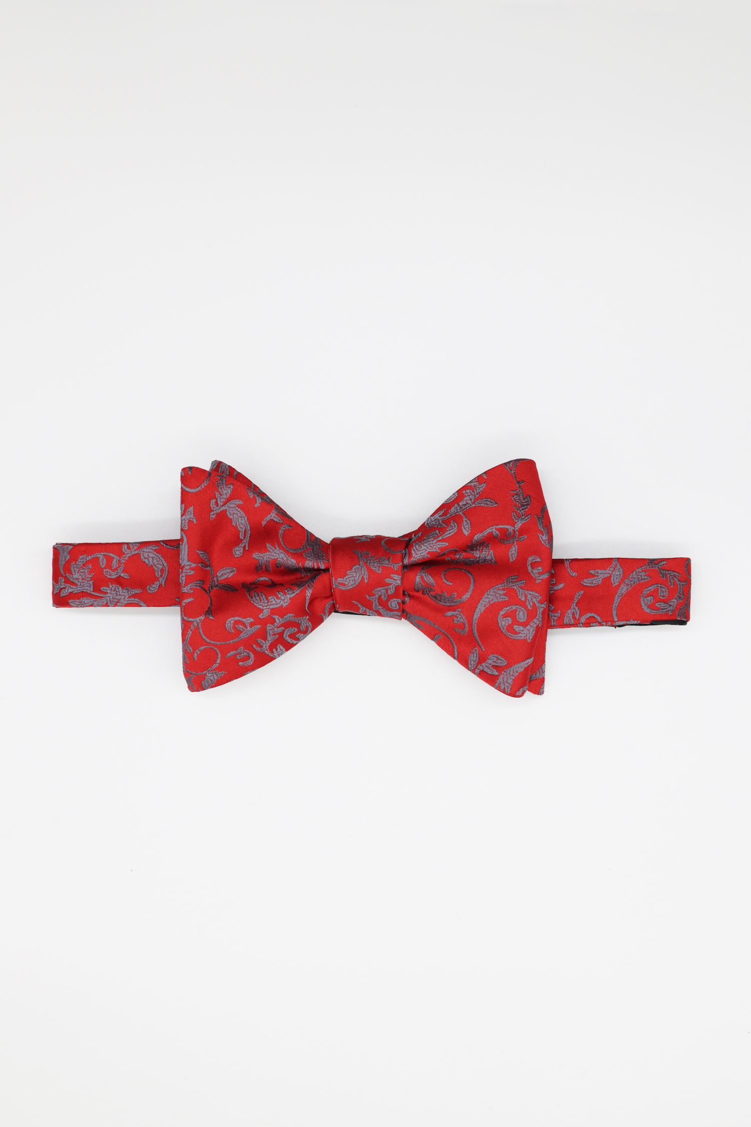 Red Flower Grey Bowtie โบว์ไทด์สีแดงดอกไม้เทา