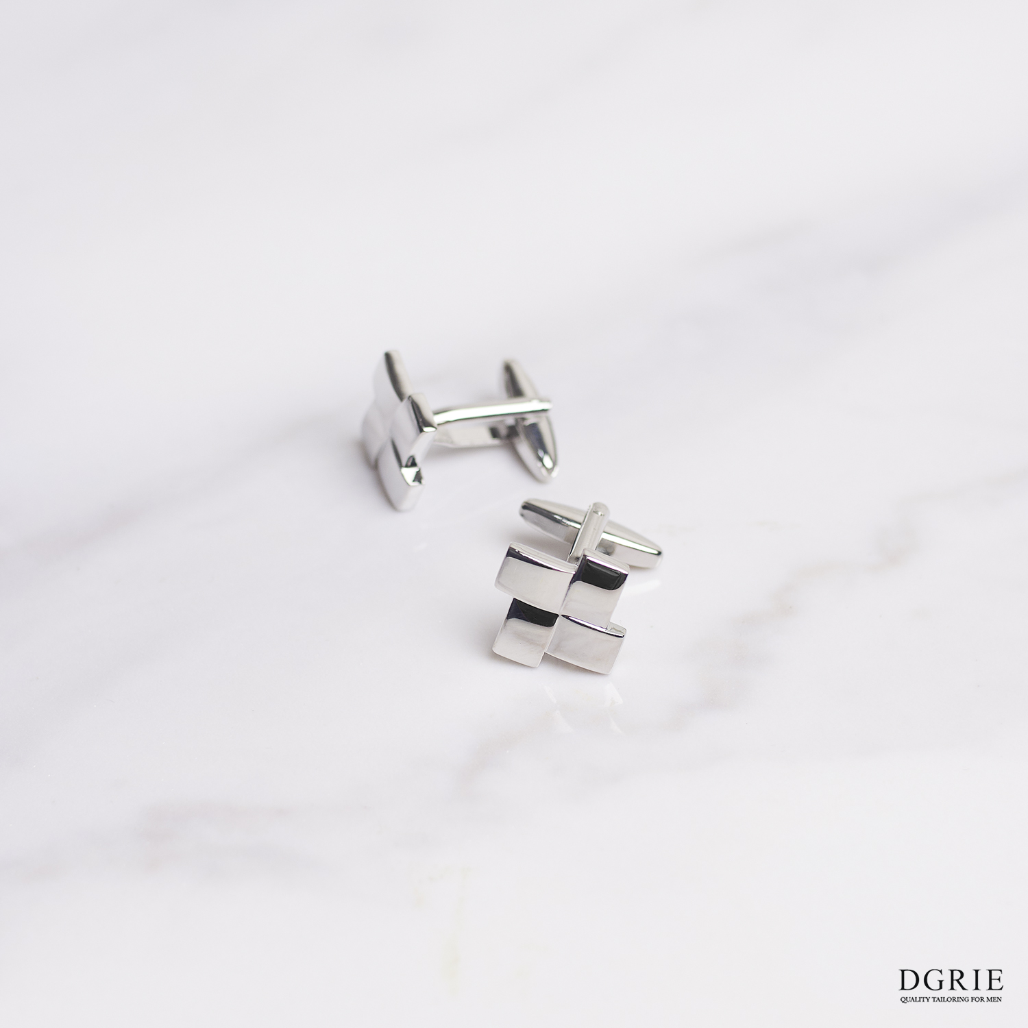 Silver Geometrical shape Cufflinks – กระดุมข้อมือทรงเรขาคณิตสีเงิน