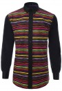 เสื้อเช้ิตสีดำตัดต่อผ้าลายสลับสี