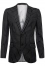 เสื้อสูทสีดำ ลายเส้นสีขาวเส้นเล็ก เสื้อสูทงานตัดเย็บคุณภาพ ทรงเข้ารูป สวมใส่ได้ง่ายด้วยสีดำ ตัดด้วยเส้นสีขาว