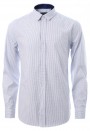 เสื้อเชิ้ตลายตารางสีน้ำเงิน เนื้อผ้าคอนตอนสวมใส่สบาย รูปแบบปกเล็กทันสมัย งานตัดเย็บคุณภาพ แพทเทิร์นได้มาตรฐาน