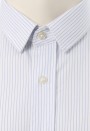 เสื้อเชิ้้ตปกเล็กลายทางสีฟ้าอ่อน ไม่มีกระเป๋า งานตัดเย็บคุณภาพ เนื้อผ้าสวมใส่สบาย รูปแบบเรียบง่ายสามารถสวมใส่ได้หลากหลายโอกาส